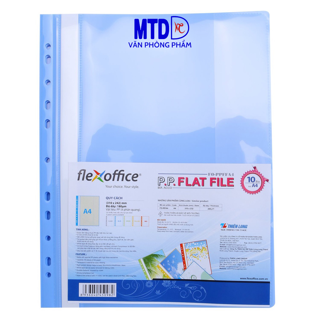 - Có thể lưu trữ tối đa 50 tờ A4 Gáy của sản phẩm được đục 11 lỗ giúp lưu trữ dễ dàng trong các loại bìa lớn khác như bìa còng , bìa nhẫn.